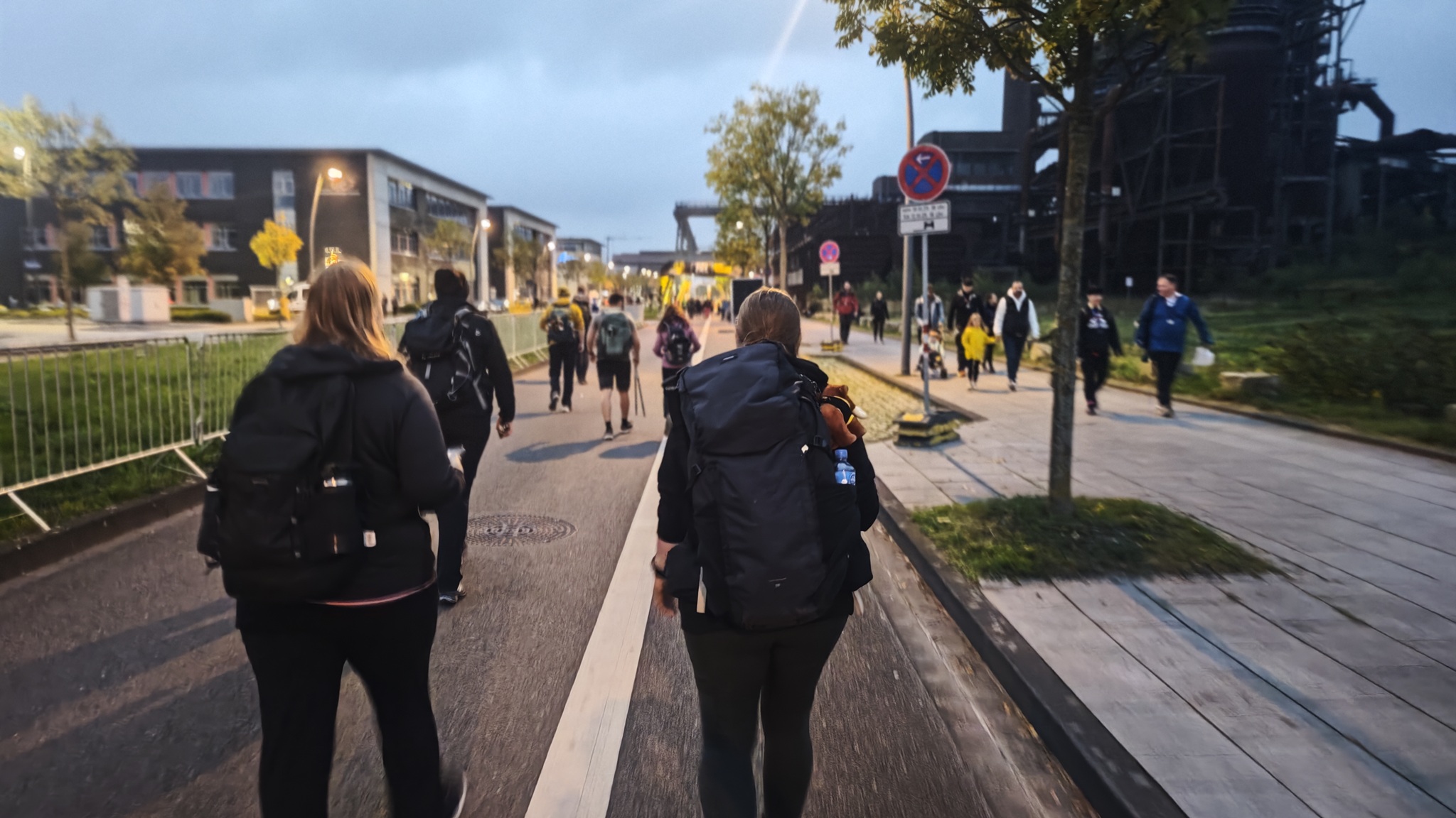 Die Strecke führte gefühlt durch jeden Hinterhof, den selbst die Müllabfuhr nur im Lottoverfahren anfährt. Beton links, Graffiti rechts, und dazwischen wir.Irgendwann dachten wir: Ist das hier Kunst? Eine sozialkritische Installation? Getreu dem Motto: „Wie viel Grau kann ein Mensch ertragen?“Nein, es war einfach Dortmund.